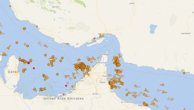 이 15척 가운데 14척이 호르무즈 해협 밖에 있는 것으로 파악되며, 해협 내 1척만 있는 상황이다.