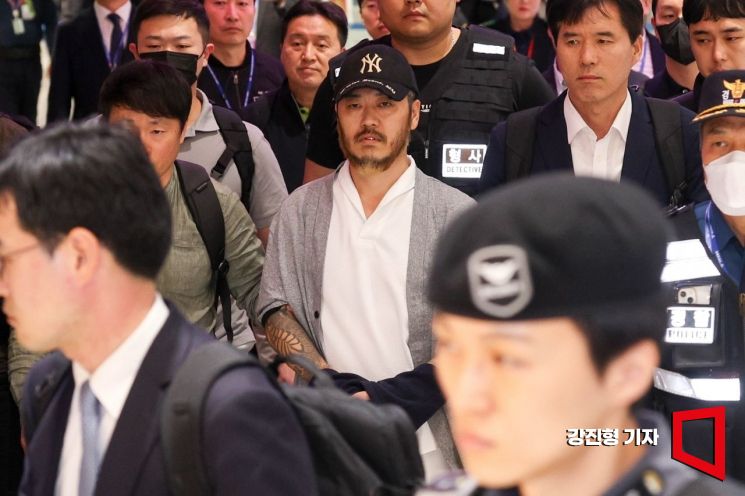 필리핀에 수감 중이던 일명 '텔레그램 마약왕' 박왕열이 25일 인천국제공항 제2여객터미널을 통해 송환되고 있다. 이번 범죄인 송환은 정부가 송환 노력을 기울인 지 9년여만이자, 이재명 대통령이 이번 달 초 필리핀과의 정상회담에서 인도 요청을 한 지 약 3주 만이다.