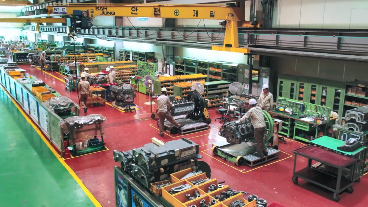 조립동의 좌측은 함정 엔진, 우측은 육상엔진 조립라인으로 구분됐다. 벽면에는 마치 물류센터처럼 각종 부품이 정리되어 있었다. 함정 라인에는 해양경찰의 500t급 경비함에 탑재되는 주 엔진(1163시리즈)을 조립 중이었다. 5700마력으로 지상 엔진에 비해 크기가 5배는 커 보였다. 육상엔진 조립라인에는 전차 엔진, 자주포 엔진을 조립이 한창이었다. 10여명의 직원이 500여개의 부품으로 조립을 했고 조립라인을 지날 때마다 엔진의 윤곽은 드러났다. 조립라인 끝에는 완성된 엔진 9대가 놓여 있었다. 이집트와 폴란드 등에 수출되는 K9 자주포 엔진이다. 엔진은 독일 MTU사의 엔진을 기술협력생산 한 엔진과 국산화 엔진 2가지로 구분됐다.