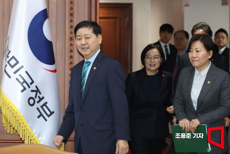 구윤철 경제부총리 겸 재정경제부 장관을 비롯한 관계부처 장관들이 25일 서울 종로구 정부서울청사에서 열린 국가창업시대 전략회의에 참석하고 있다.