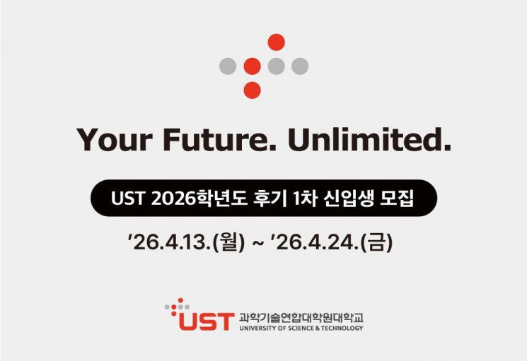 과학기술연합대학원대학교(UST)는 내달 13~24일 '2026학년도 후기 석·박사과정 신입생' 입학 원서를 받는다고 25일 밝혔다.