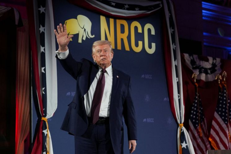 도널드 트럼프 미국 대통령이 25일(현지시간) 워싱턴D.C.에서 열린 공화당의회위원회(NRCC) 만찬 행사에서 이란 전쟁에 대해 연설하고 있다. 로이터연합뉴스