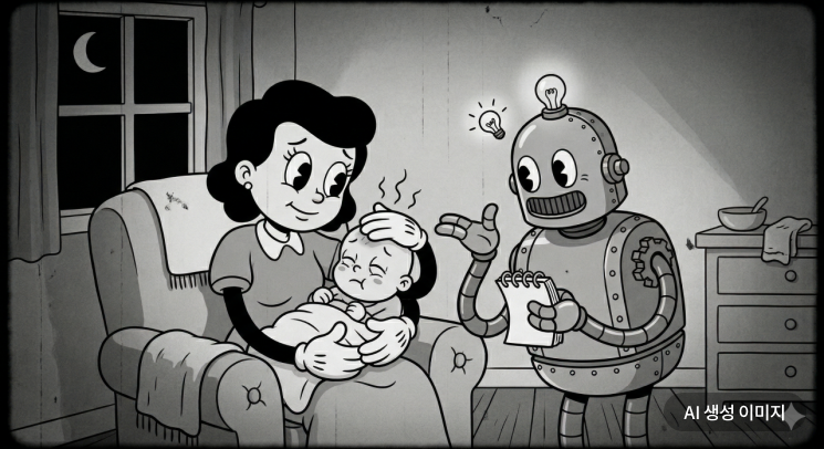 지금도 많은 갓난아기의 부모들이 간밤에 채팅 로봇 '챗GPT'를 켜고 갑작스러운 고열에 시달리는 아이를 낫게 할 방법을 묻는다. 로봇에게 의지하는 건 잘못이 아니다. 하지만 아파서 눈만 깜박이는 아이를 들여다보며 밤을 새는 부모의 심정까지 로봇이 대신 하게 할 수는 없다. 로봇이 할 수 있는 것과 우리가 해야 하는 것 사이의 선, 그 선은 결국 우리가 그어야 한다.