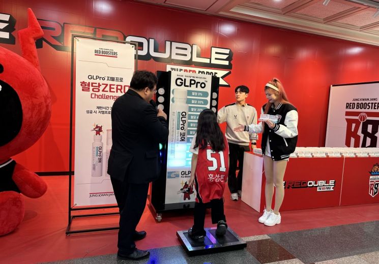 27일 KGC인삼공사에 따르면 정관장은 이달 22일 농구단 '레드부스터스' 홈경기에서 '정관장 브랜드데이'를 운영하고 관중이 자연스럽게 브랜드를 접할 수 있도록 다양한 참여형 콘텐츠를 선보였다. 경기장 외부에서는 발판 스텝퍼를 활용한 'GLPro 혈당 제로 챌린지'를 진행해 목표 달성 시 경품을 제공하고 경기 중에는 제품을 직접 경험할 수 있는 기회를 마련했다.