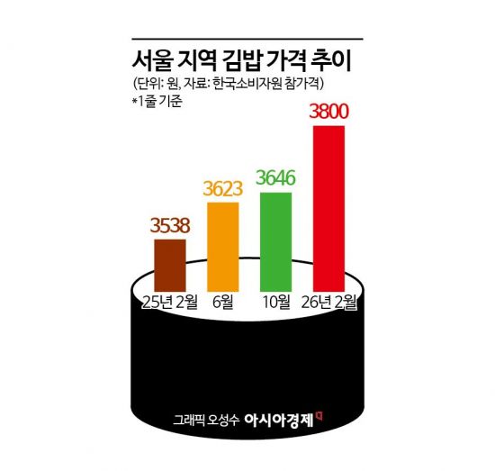 지난달 서울 지역 김밥 1줄 평균 3800원