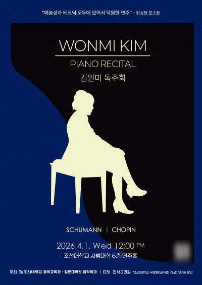 조선대학교는 다음 달 1일 세계적인 피아니스트 김원미를 초청해 독주회와 마스터클래스를 개최한다고 26일 밝혔다.