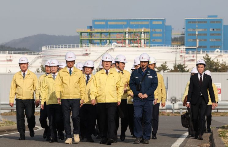 이 대통령은 이날 충남 서산의 한국석유공사 비축기지에서 열린 현장 간담회에 참석해 "민관이 또 기업들이 힘을 모아서 함께 해야 될 일이 상당히 많을 것"이라며 이같이 밝혔다.