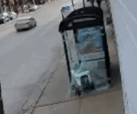 정류장 유리 산산조각나며 보행자 안전 위협