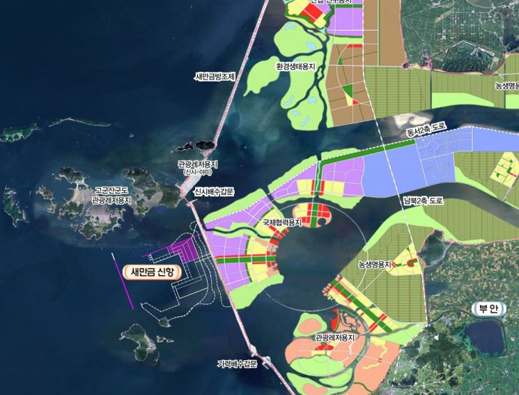 새만금항 신항은 새만금 산업단지 등에서 발생하는 화물을 처리하기 위해 방조제 전면 해상에 조성 중인 인공섬식 항만으로, 정부는 2009년부터 신항 개발사업을 추진해왔다. 올해 하반기에는 일반화물을 처리하는 잡화부두 2선석이 처음 개장될 예정이다.