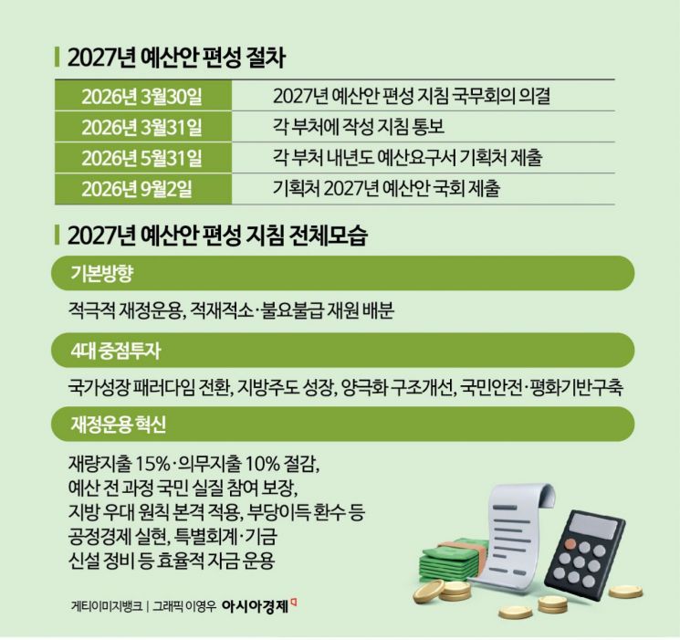 정부는 30일 발표한 '2027년도 예산안 지출 구조조정 추진방안'에서 "잠재성장률 반등을 위한 적극적 재정 운용이 필요함을 감안해 역대 최대 수준의 지출 구조조정을 추진한다"면서 "모든 재정사업을 제로베이스에서 전면 재검토해 저성과·비효율 사업은 과감히 감축·폐지하겠다"고 밝혔다. 국가재정운영계획 중기재정지출계획(2025~2029년)에 따르면 의무지출의 연평균 증가율은 6.3%로, 총지출 증가율(5.5%)을 크게 넘어선다. 재정의 지속 가능성을 유지하기 위해 의무지출 정비 등 특단의 구조조정이 필요하다는 게 정부의 판단이다.