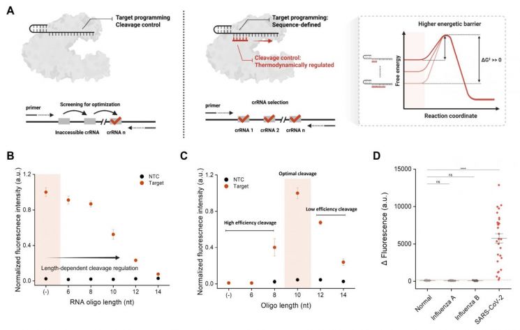 이번 기술의 핵심은 CRISPR 기반 단일 반응(one-pot) 진단 과정에서 탐지 반응 속도를 정밀하게 제어할 수 있도록 짧은 유전자 조각(올리고)을 '브레이크'처럼 삽입한 것이다. 기존에는 유전자마다 증폭과 탐지 반응 속도가 달라 최적 조건을 반복적으로 찾아야 했지만, 연구팀은 올리고 길이 조절만으로 반응 속도를 독립적으로 제어하는 설계 규칙을 제시했다.