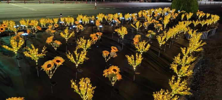 해바라기와 유채꽃 모양의 태양광 조화는 낮 동안 에너지를 축적했다가 밤이면 환하게 불을 밝혀, 주말 나들이 후 귀가하는 방문객들에게 이색적인 힐링 경험을 선사하고 있다.