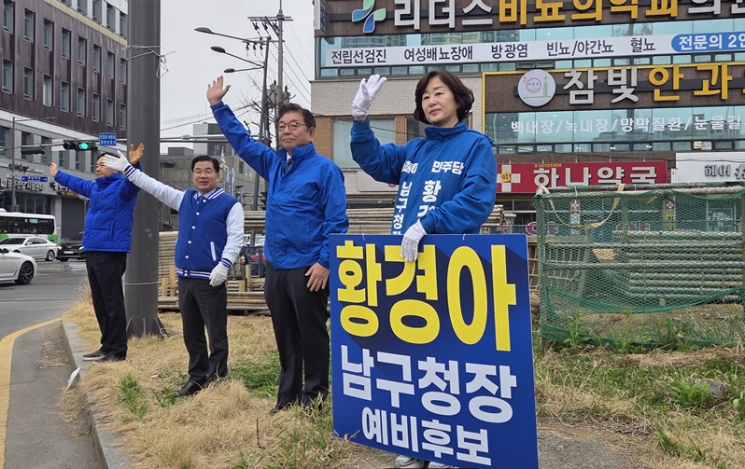 "'3선저지' 원팀으로 황경아 승리"…광주 남구청장 예비후보들 '합동 출근길 인사'