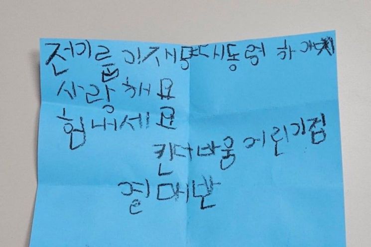 편지를 보면 "이재명 대통령 할아버지 사랑해요 힘내세요", "대통령 할아버지 힘내세요" 등의 응원 문구가 담겼다.