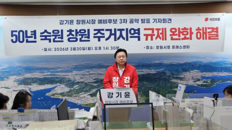 강 예비후보는 30일 시청 프레스센터에서 기자회견을 열고 먼저 "50년 숙원인 창원 주거지역 규제를 완화해 주택 가치를 상승시키겠다"며 주거지역 규제 완화 문제 해결을 공약으로 제시했다.