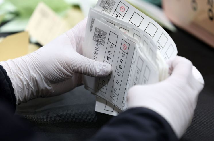 오는 6월 3일 치러지는 제9회 전국동시지방선거를 앞두고 광주시선거관리위원회 관계자들이 지난 25일 광주 서구 김대중컨벤션센터에서 모의 개표를 하고 있다. 연합뉴스