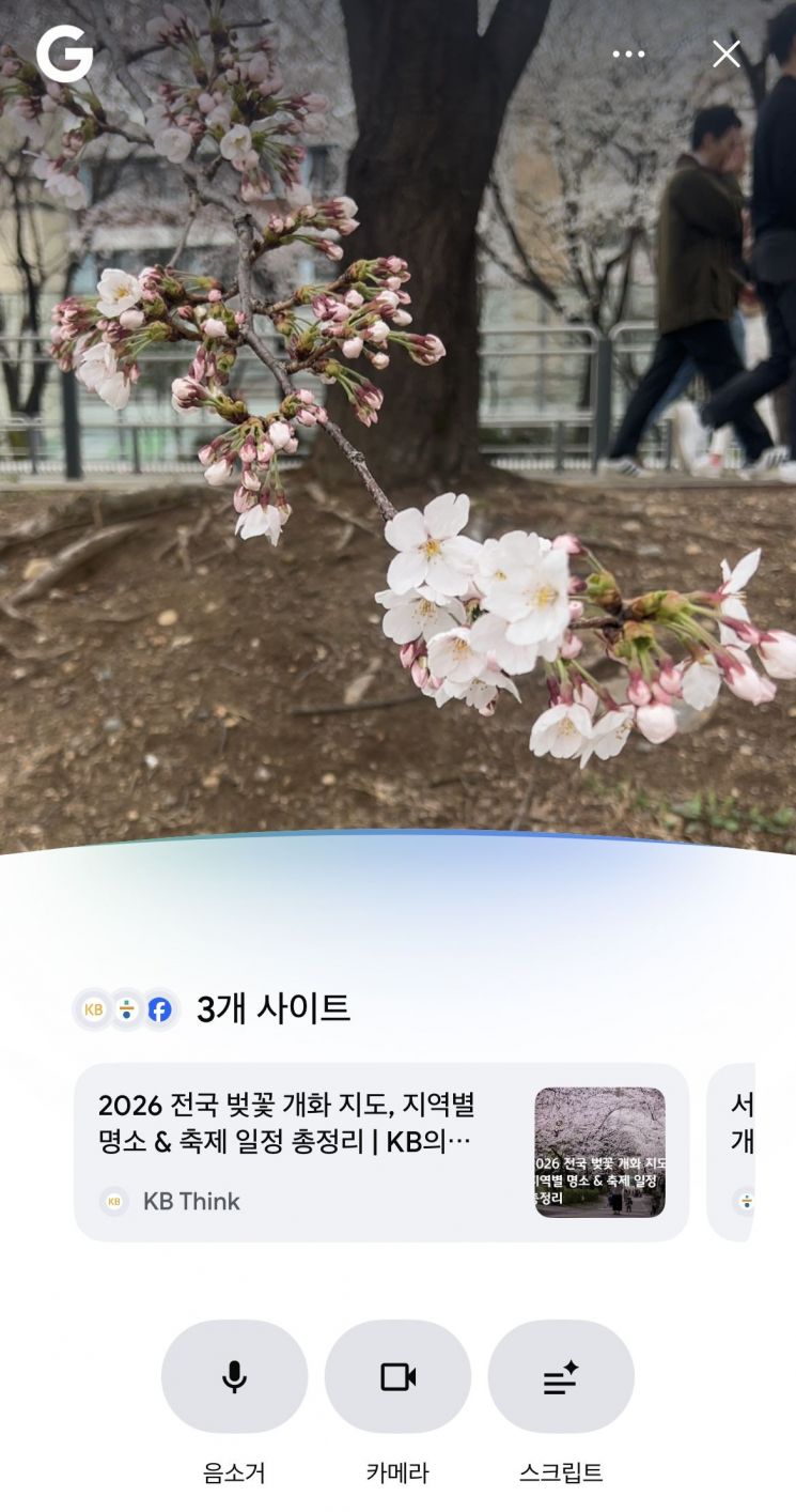 2일 오후 벚꽃이 피기 시작한 서울 영등포구 여의도한강공원 앞에서 구글을 켰다. 휴대폰 후면 카메라로 벚나무를 찍은 뒤 꽃이 어느 정도 피었는지, 언제쯤 다시 와야 꽃구경을 제대로 즐길 수 있는지를 물었다. 근처에 있던 산수유와 비교해 얼마나 늦게 필지도 척척 대답해줬다. 휴대폰으로 검색을 한다기보다 얼굴 없는 똑똑한 비서가 옆에서 궁금한 것을 다 알려주고 있는 기분이었다.