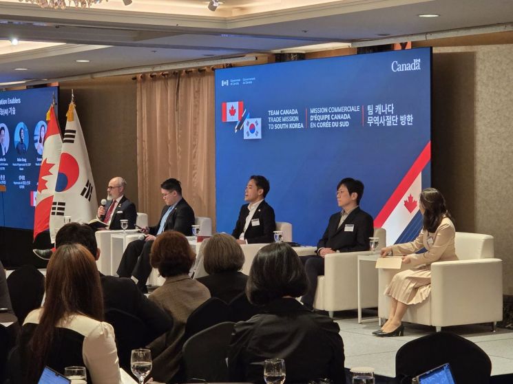 '한국·캐나다 기업 간 경제협력 포럼'이 31일 오전 10시 서울 중구 롯데호텔에서 주한캐나다대사관 주최로 진행됐다. 이날 행사는 캐나다 무역사절단의 방한과 함께 이뤄졌다. 행사에는 박정성 산업통상부 통상차관보와 김병민 서울시 정무부시장, 성낙호 네이버클라우드 기술총괄, 진요한 LG CNS AI 센터장, 배순민 KT AI 퓨처랩장, 마닌더 시두 캐나다 국제통상부 장관, 필립 라포르튠 주한캐나다대사, 사라 윌쇼 캐나다 외교부 차관보, 캐나다 AI 기업 코히어의 이반 장 공동창립자 등이 참여했다.