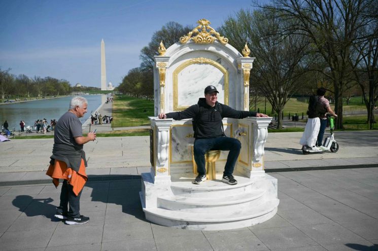 30일(현지시간) 워싱턴포스트(WP)에 따르면 링컨기념관 앞 산책로에 설치된 이 조형물은 금색 변기를 대리석 문양 받침대 위에 올려놓은 형태다. 실제 사용은 불가능한 구조다.