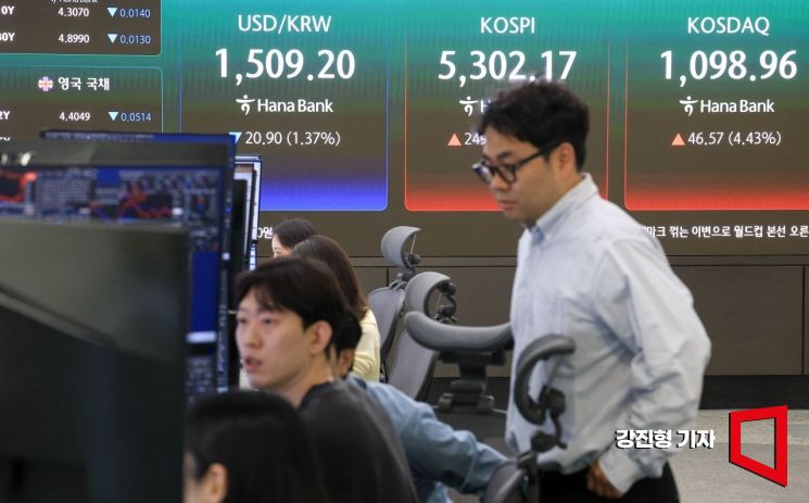 코스피 장초반 5%대 급등…5300 돌파