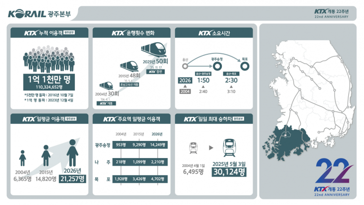 대한민국의 대표 교통수단 KTX가 개통 22주년을 맞았다.