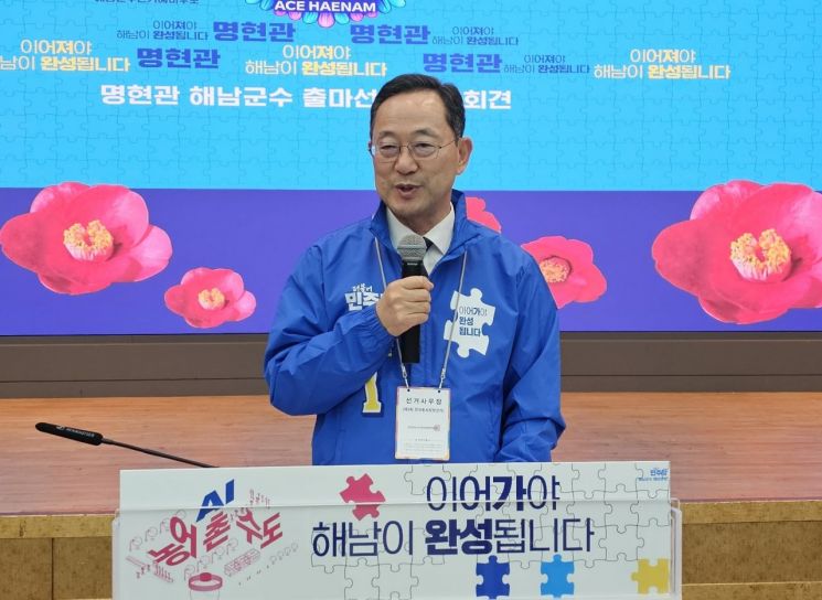 명 예비후보는 1일 오후 해남 문화예술회관 다목적실에서 출마 기자회견을 열고 "해남을 인류 미래 문제에 답하는 새로운 모델로 키우겠다"고 밝혔다. 이날 행사는 참석 범위를 최소화해 달라는 선거관리위원회의 권고에 따라서 지지자 동원 없이 언론인들만 초청된 가운데 차분하고 심도 있게 진행됐다.
