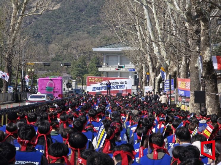 이날 청와대 앞엔 HMM 육상노조원 대부분인 600~700명이 모인 것으로 추정된다.