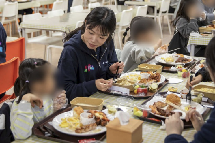 이날 행사에는 김태원 아워홈 대표를 비롯한 임직원 20여 명이 참여해 식사 제공뿐 아니라 아이들과 소통하는 시간도 가졌다. 임직원들은 스티커 사진 촬영과 진로 상담 등을 진행하며 교감을 나눴다. 김 대표는 "아워홈의 특성을 가장 잘 살릴 수 있는 방식으로 아이들에게 의미 있는 선물을 할 수 있어 뜻깊다"면서 "일회성 지원에 그치지 않고 앞으로도 다양한 지원을 이어나갈 것"이라고 말했다.
