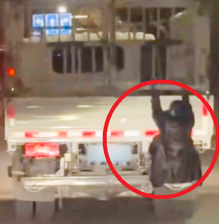 2일(현지시간) 홍콩 매체 '사우스차이나모닝포스트(SCMP)'는 중국의 한 도로에서 벌어진 일을 전했다. 당시 야간 순찰 중이던 현지 경찰관은 도로를 달리는 소형 트럭을 보고 경악했다. 트럭 짐칸 뒤에 아무 안전 장비도 갖추지 않은 여성 한 명이 매달려 있었기 때문이다.