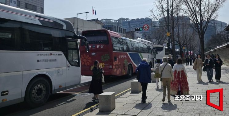 BTS컴백 공연을 계기로 서울을 찾은 외국인관광객들이 늘어난 가운데 23일 서울 경복궁 일대는 관광객들이 타고온 버스들로 북적이고 있다. 2026.3.23 조용준 기자