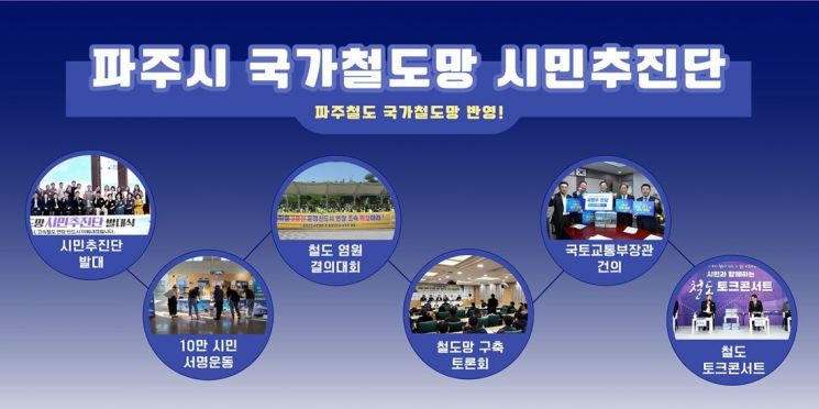 그 밖에도 범시민 결의대회와 국민청원, 대중공연 무대처럼 풀어낸 '철도 콘서트' 등 다양한 방식으로 파주 철도망 구축의 필요성을 알리고 정부를 설득하는 데 총력을 기울여왔다.