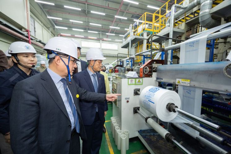 이번 방문은 중동 전쟁 여파로 나프타 수급이 불안정해지면서 종량제봉투 사재기와 품절 현상이 발생하자, 정부가 직접 생산 상황을 점검하고 대응에 나서기 위해 추진됐다.