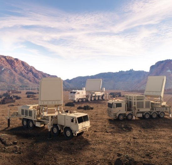 맨 오른쪽이 한화시스템의 장사정포요격체계 다기능레이다(LAMD MFR). 왼쪽부터 중거리 지대공 유도무기체계 다기능레이다(M-SAM-II MFR), 장거리 지대공 유도무기체계 다기능레이다(L-SAM MFR), 장사정포요격체계 다기능레이다(LAMD MFR). 연합뉴스