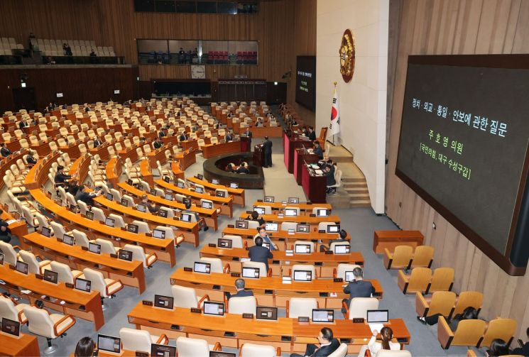 이날 오후 국회 본회의 정치·외교·통일·안보 분야 대정부질문에서 윤상현 국민의힘 의원은 김민석 국무총리를 향해 "관행적인 추경 중독시대에 들어갔다"고 직격했다.