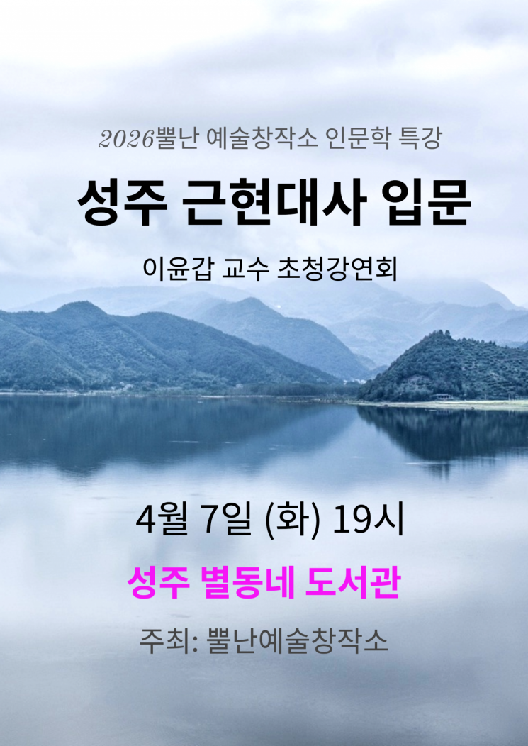 경북 성주군 문화예술단체 '뿔난예술창작소'가 오는 7일 오후 7시 성주 별동네도서관에서 「성주 근현대사 입문」 인문학 특강을 연다.
