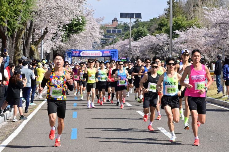 벚꽃길 달린 6000명… 진주남강마라톤대회 성료