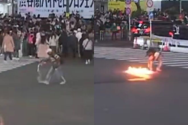 일본 도쿄 중심부의 대표 관광지인 시부야 스크램블 교차로에서 한 남성이 휘발유를 뿌리고 불을 지르는 사건이 발생했다.