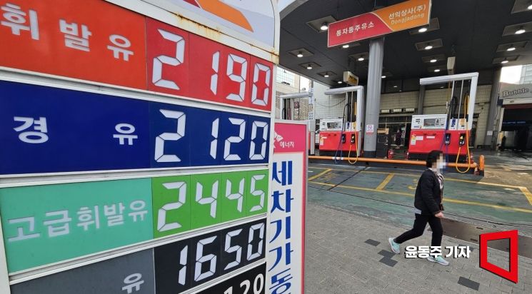 도널드 트럼프 미 대통령의 강경 발언으로 국제유가가 급등하고 있는 지난 3일 서울 용산구의 한 주유소 가격에 휘발유·경유 가격 안내문이 놓여 있다. 윤동주 기자