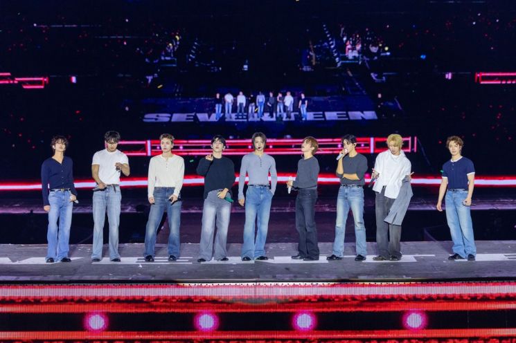 6일 하이브 뮤직그룹 레이블 플레디스엔터테인먼트에 따르면 세븐틴은 4~5일 인천아시아드주경기장에서 '세븐틴 월드 투어 [뉴_] 앙코르'를 개최했다. 이번 공연은 지난해 9월 시작한 월드투어의 마지막 무대로, 전 세계 14개 도시에서 31회에 걸쳐 총 90만명(온·오프라인)의 관객을 동원했다.