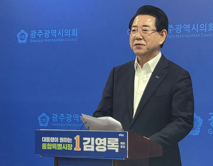 김 후보는 6일 오전 광주시의회 브리핑룸에서 기자회견을 열고 "통합의 제안자 김영록, 통합의 추진자 강기정, 통합의 입법자 신정훈, 세 사람이 대통합의 완성을 위해 함께 여정을 시작하겠다"고 이같이 밝혔다.