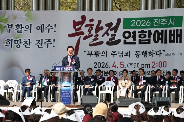 박완수 경남도지사가 지난 5일 오후 진주시 남강 야외무대에서 열린 2026년 부활절 연합예배에 참석해 이같이 말했다.