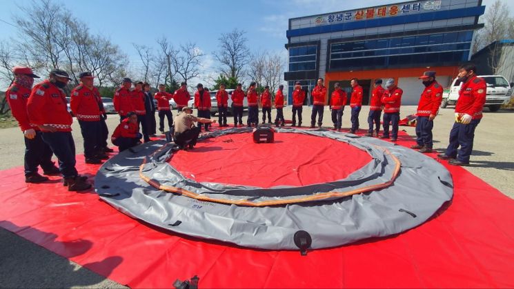 이번 훈련은 창녕군 산불대응센터에서 진행됐으며, 산림재난대응단을 중심으로 산불 상황을 가정해 약 3만 리터 규모의 이동식 저수조를 신속하게 설치하고 운영하는 데 중점을 두었다.