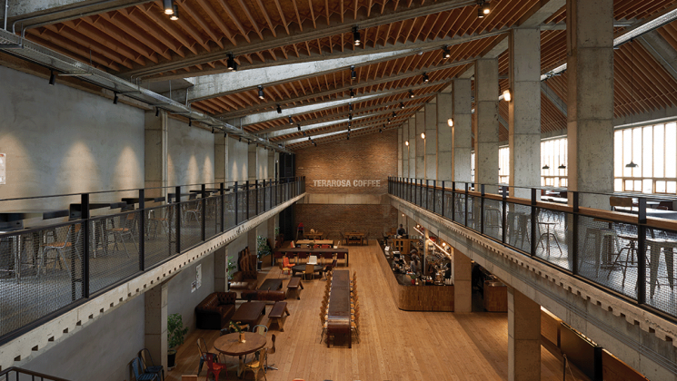 학산이 운영하는 테라로사는 2002년 강릉에서 스페셜티 커피 전문점으로 시작했다. 김 전 대표가 20여년간의 은행 생활을 접고 고향인 강릉으로 내려와 개업하면서 시작한 것이 바로 테라로사다. 당시 김 전 대표는 커피 볶는 공장을 열고 이 로스팅 공장을 매장 내부에 배치했다. 공장형 카페의 원조다. 특히 최상급 생두를 직거래해 차별화된 커피 맛을 제공하면서 국내 대표 스페셜티 커피 전문점으로 자리 잡았다.