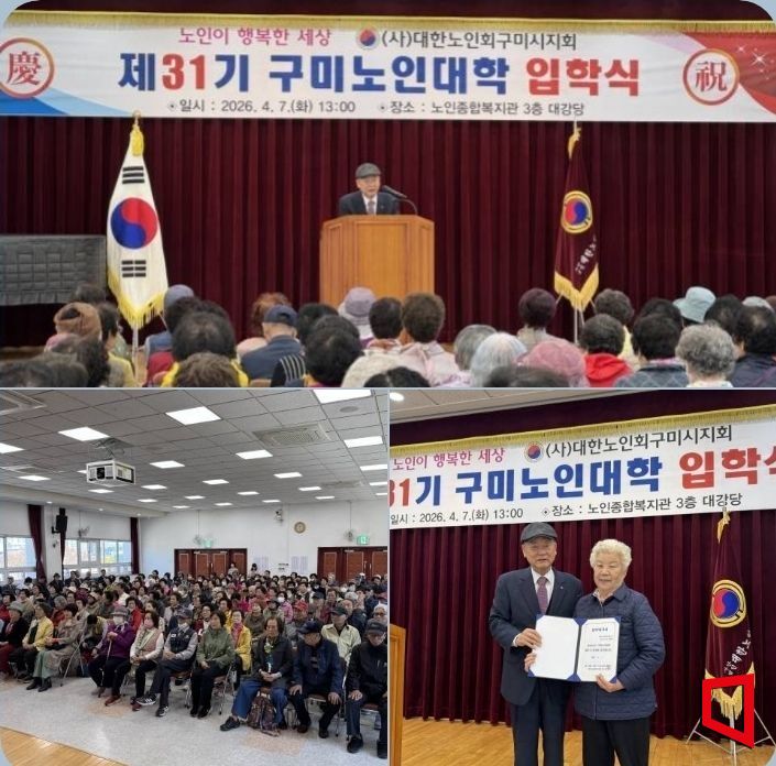 (사)대한노인회 구미시지회(지회장 이재호) 부설 구미노인대학(학장 이순락)이 7일 오후 1시, 구미시노인종합복지관 대강당에서 제31기 신입생 205명의 입학식을 개최했다.