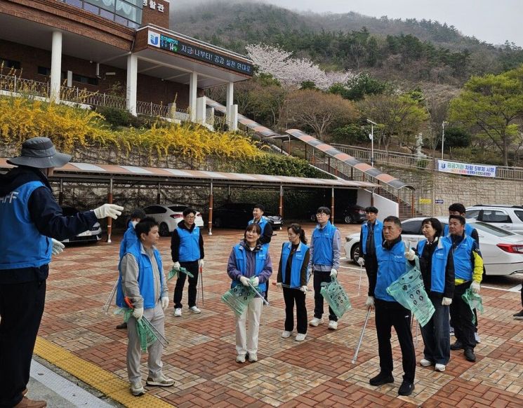 이날 자발적으로 행사에 참여한 직원들은 교육원 인근과 만대산 등산로 주변에 겨우내 방치된 각종 생활 쓰레기와 폐기물을 수거하며 구슬땀을 흘렸다. 대대적인 정화 활동 결과, 20ℓ(L) 종량제 봉투 15개 분량에 달하는 쓰레기가 수거됐다.
