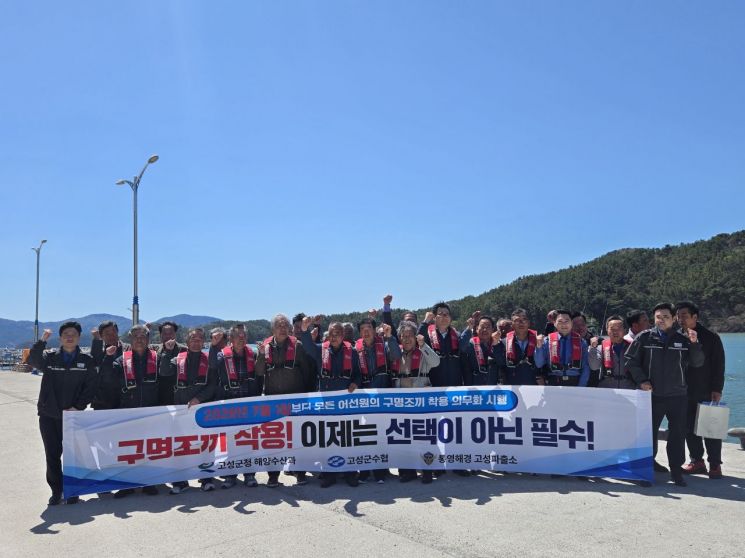 경남 고성군은 어선 사고 발생 시 인명 피해를 예방하기 위해 구명조끼 착용 의무화 조치를 홍보했다.