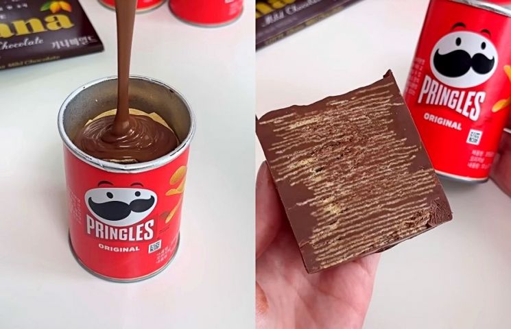 두바이쫀득쿠키(두쫀쿠), 버터떡 등 사회관계망서비스(SNS)를 타고 번지는 디저트 유행이 하루가 멀다 하고 교체되는 가운데 이번에는 프링글스 감자칩에 초콜릿을 부어 먹는 이른바 ‘프링글스 초코 블럭(Pringles Chocolate Block)’이 새로운 트렌드로 떠오르고 있다. 단순한 조합이지만 '단짠(달콤+짭짤)'의 직관적인 맛과 강렬한 시각적 요소가 숏폼 콘텐츠를 통해 빠르게 번지는 모습이다.