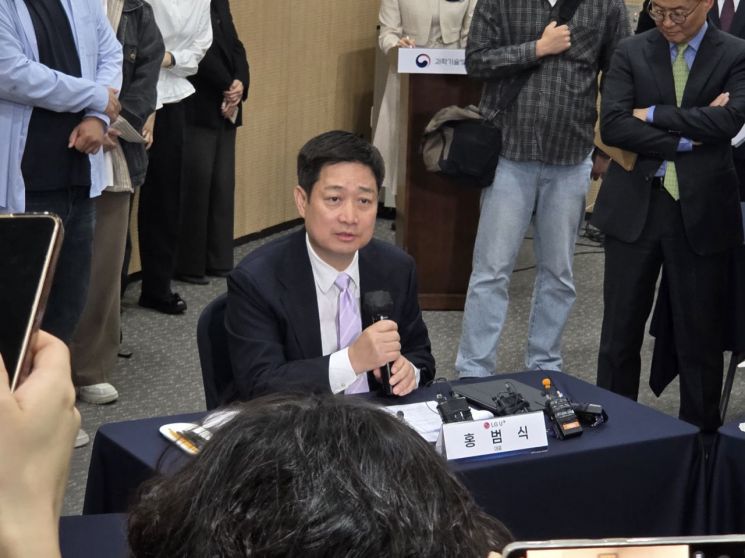 홍범식 LG유플러스 대표가 9일 서울 강남구 한국과학기술회관에서 열린 부총리 겸 과학기술정보통신부(과기정통부) 장관·통신사 최고경영자(CEO) 간담회에서 발언하고 있다. 공병선 기자