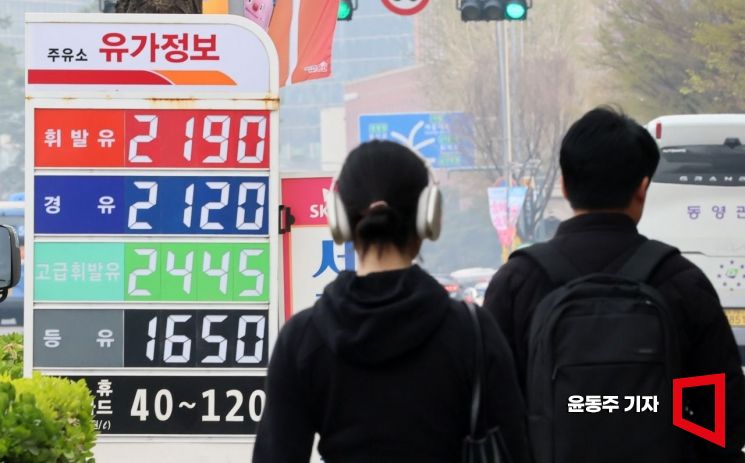 도널드 트럼프 미 대통령의 강경 발언으로 국제유가가 급등하고 있는 3일 서울 용산구의 한 주유소 가격에 휘발유·경유 가격 안내문이 놓여 있다. 2026.04.03 윤동주 기자
