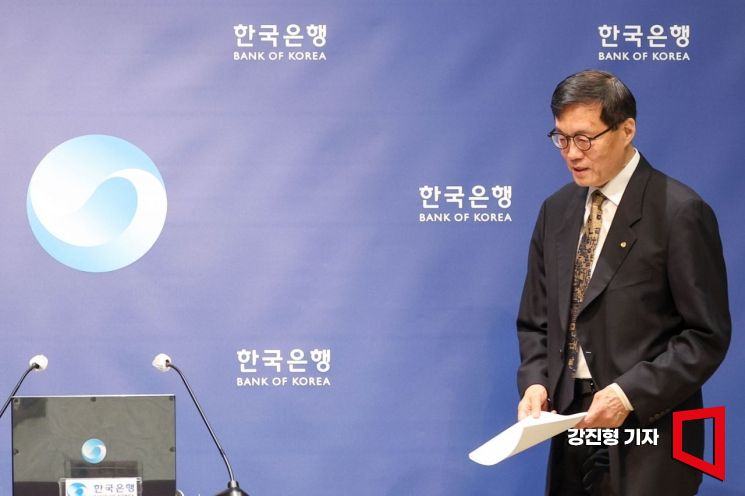 이창용 한국은행 총재가 10일 서울 중구 한국은행에서 열린 통화정책방향 기자간담회에 참석하고 있다.